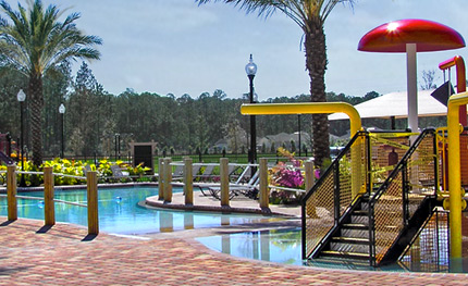 a Fun Pool with a children's play feature. The large paver